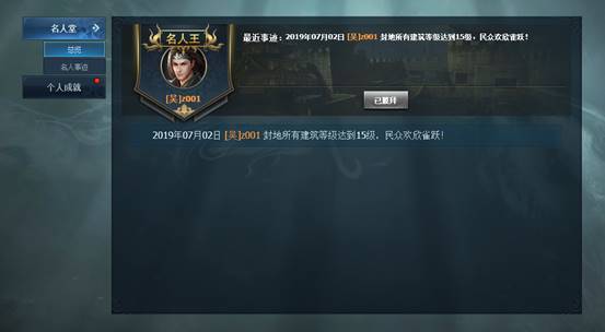 1. 名人堂:名人堂记录了本区服中率先完成伟大名人事迹的玩家,完成名人事迹最多的玩家将被称为名人王。每个玩家每天可以膜拜1次名人王,获取奖励。